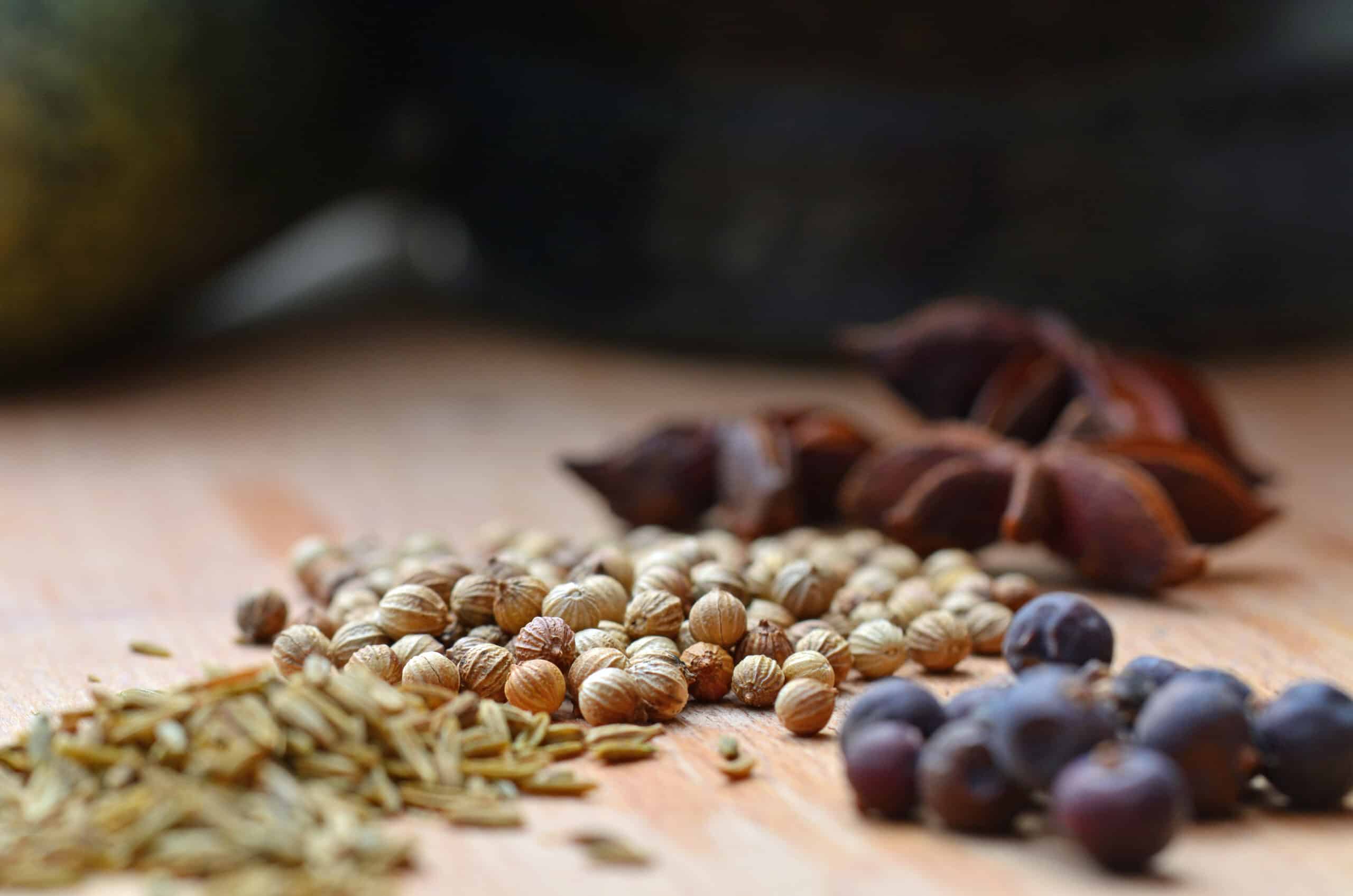 korianderzaad: heeft een milde, zoete, kruidige smaak die wat aan anijs doet denken. Kan zowel in zoete (bv speculaas) als hartige gerechten (Indiaas, Indonesisch) gebruikt worden.